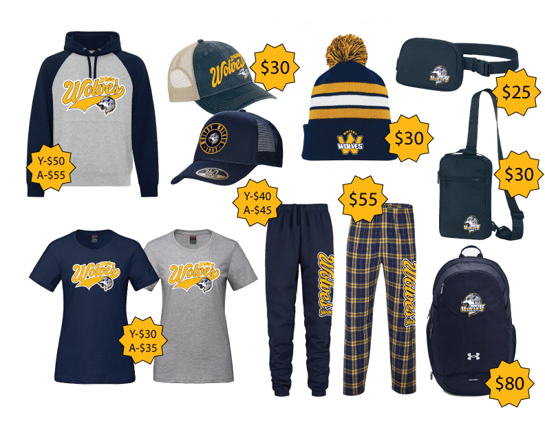 - includes 2 Wolf logos, 1 small W logo and up to 4 digits (0-9)